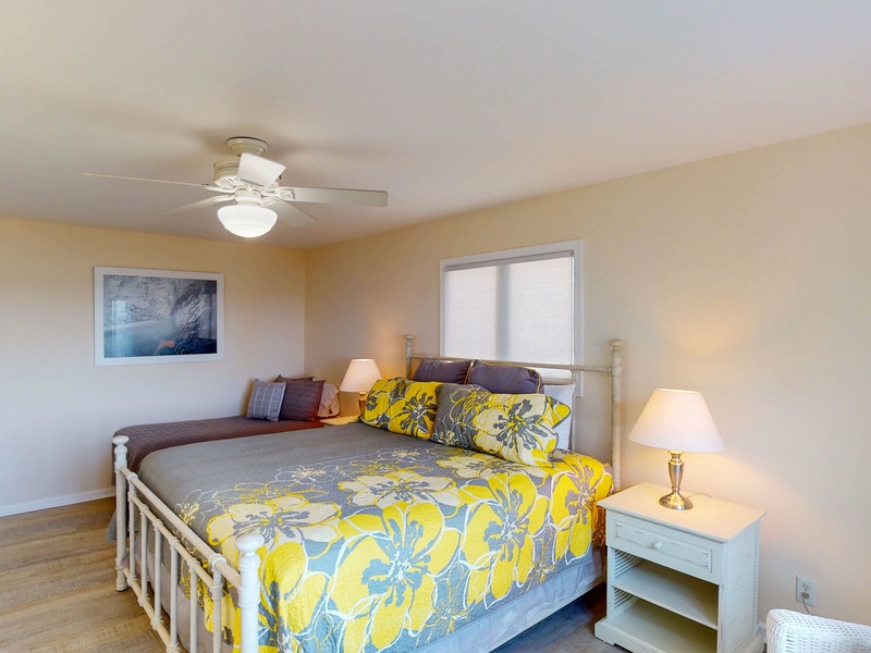 Relax to the waves in this6 bedroom, 4 bath beach cottage with great ocean views. Enjoy your morning coffee on the deck with the smooth waves crashing. Oceanfront 6 Bed, 4 Bath, Great Room, Kitchen with gas grill, Dining area, Screened Porch & Sundeck w/fabulous ocean views. MW, DW, W/D, 4 Cable TV, 1 DVD, WiFi, Gas Grill, POOL PASS @ DAYS INN. BEDS: 3 King, 1 Queen, 1 Full, 1 Twin, 2 Sets Twin over Full Bunks. Sleeps 15. NO PETS, NO SMOKING.