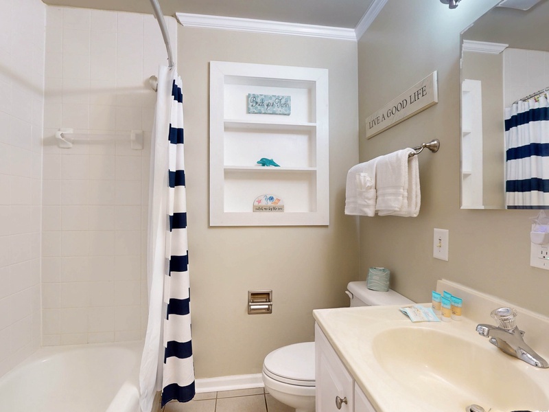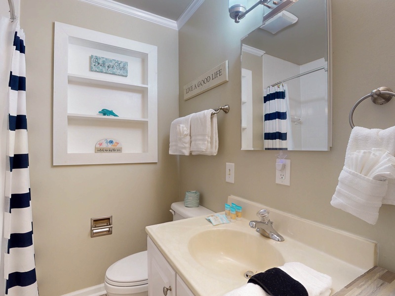 Join us for a relaxing stay at Beachy Sisters A: a single-story duplex with two bedrooms and two bathrooms.
